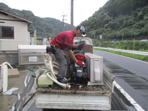 取り外してあるエアコンや不用品の回収の際、お忙しい方は玄関の外まで出しておいていただければ、お立ち会いなく回収いたしますのでご安心くださいね。